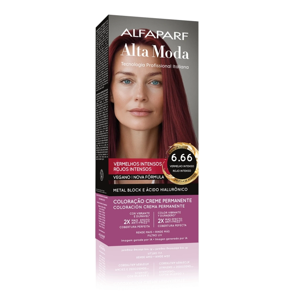 COLORACAO>PERMANENTE>ALTA MODA>TINTURA ALTA MODA 6.66 LOURO ESCURO VERMELHO INTENSO