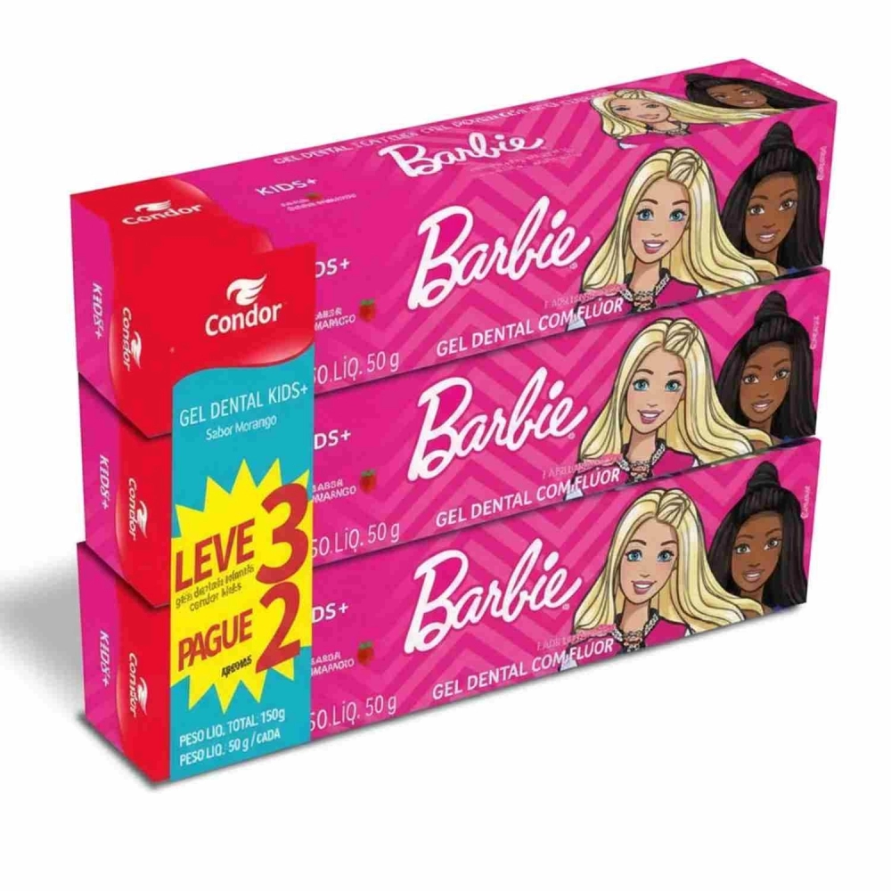 HIGIENE E CUIDADOS>HIGIENE BUCAL>CONDOR>GEL DENTAL CONDOR BARBIE 8211 50G L3P2 A PARTIR 6 ANOS