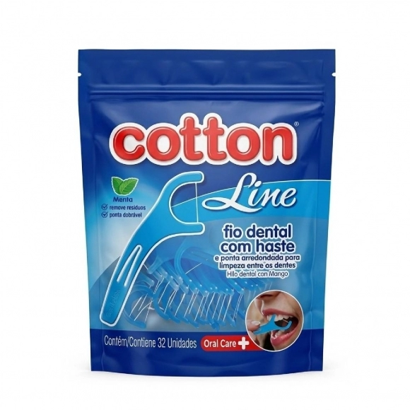 HIGIENE E CUIDADOS>HIGIENE BUCAL>COTTON>FIO DENTAL COTTON 32UN ORAL CARE COM HASTE