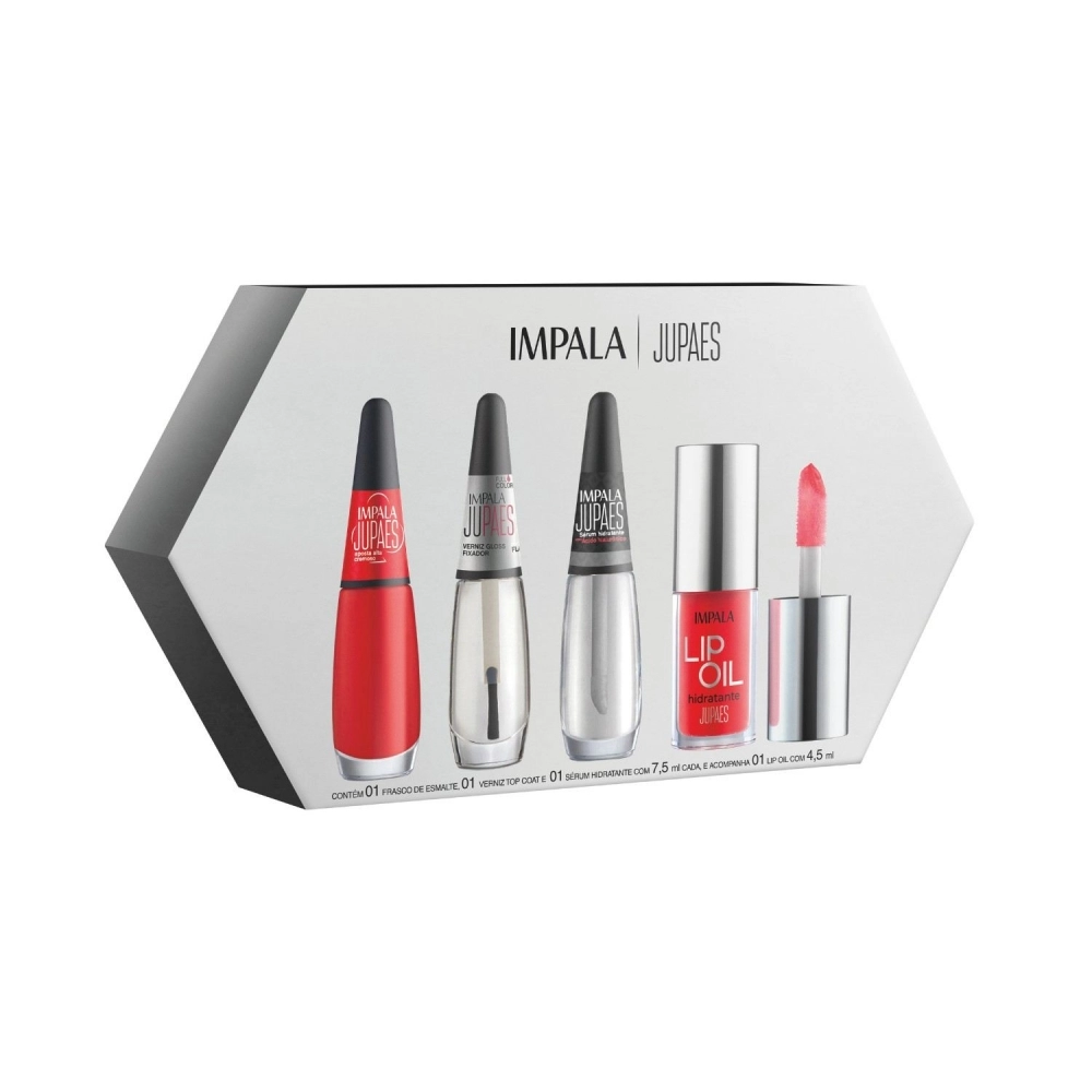 Impala Ju Paes Virando o Jogo>KIT IMP JU PAES VIRANDO O JOGO 1 ESMALTE APOSTA ALTA + 1 TOP COAT + 1 SERUM HIDR+ 1 LIP OIL VERMELHO