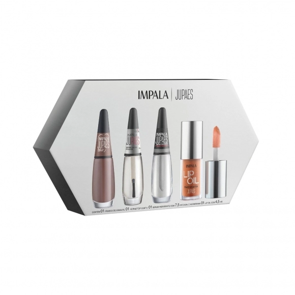 Impala Ju Paes Virando o Jogo>KIT IMPALA JU PAES VIRANDO O JOGO 1 ESMALTE PEÇA RARA + 1 TOP COAT + 1 SERUM HIDR + 1 LIP OIL NUDE T