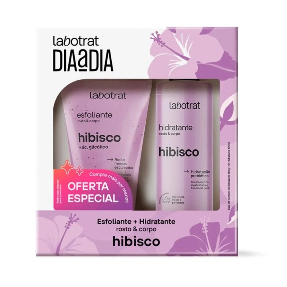 HIGIENE E CUIDADOS>ESTETICA>LABOTRAT>KIT HIDRATANTE+ESFOLIANTE LABOTRAT 190/150 DIA/DIA HIBISCO