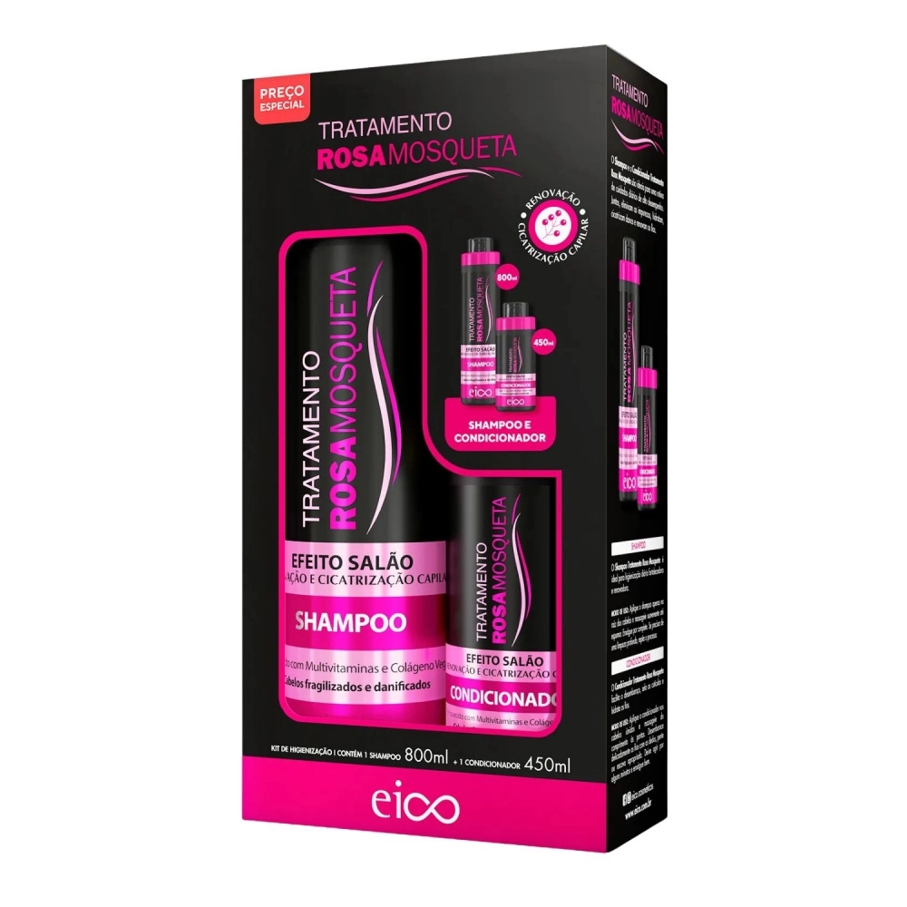 LANÇAMENTO>KIT SHAMPOO + CONDICIONADOR EICO 800/450ML ROSA MOSQUETA