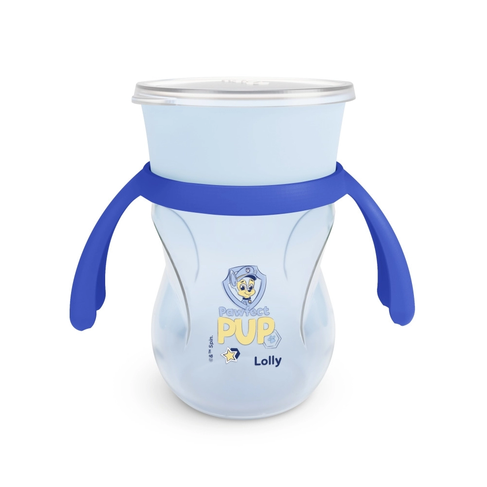 HIGIENE E CUIDADOS>PUERICULTURA>LOLLY>COPO TREINAMENTO LOLLY KINDDY 7196 M PATRULHA CANINA 360 COM ALÇA 250ML BLISTER AZUL