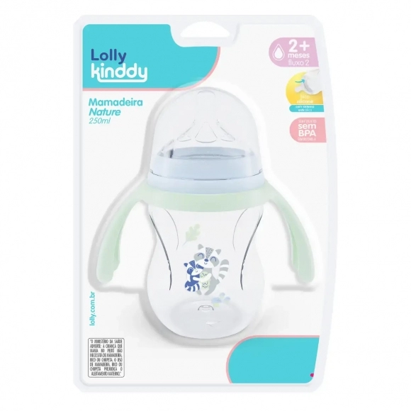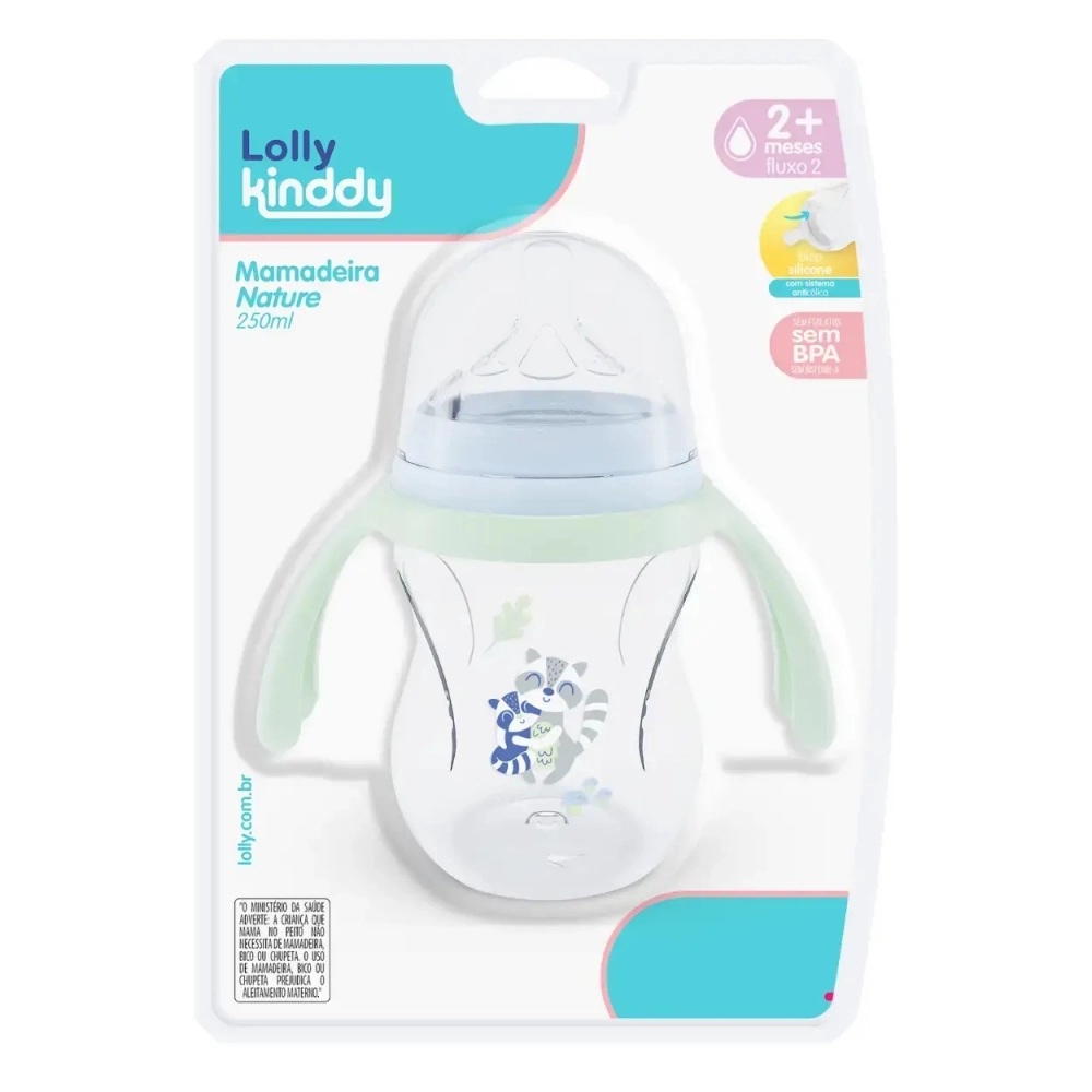 HIGIENE E CUIDADOS>PUERICULTURA>LOLLY>MAMADEIRA LOLLY KINDDY 30182 M NATURE AUREA2 250ML COM ALCA SILICONE BLISTER AZUL