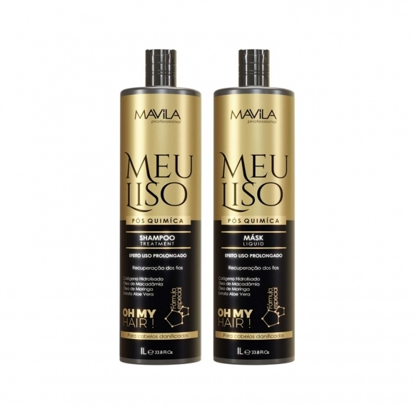 OS MAIS VENDIDOS>KIT SHAMPOO + MASCARA LIQUIDA MAVILA PROFISSIONAL 1L MEU LISO