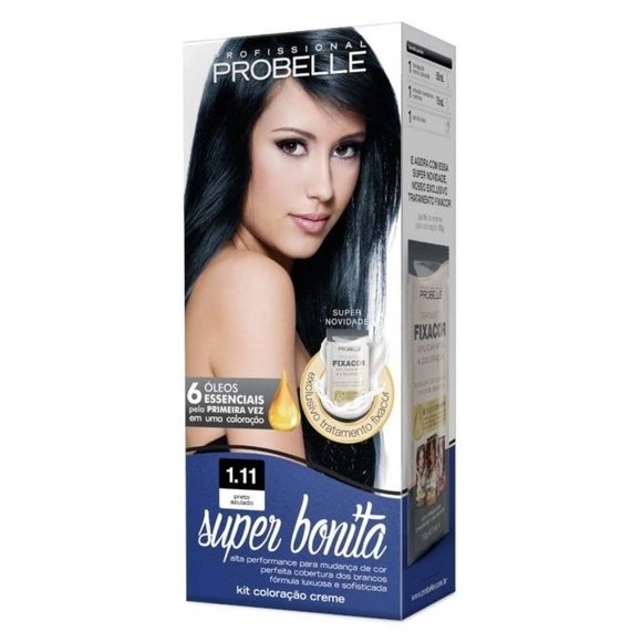 COLORACAO>PERMANENTE>SUPER BONITA>TINTURA PROBELLE SUPER BONITA KIT 1.11 PRETO AZULADO