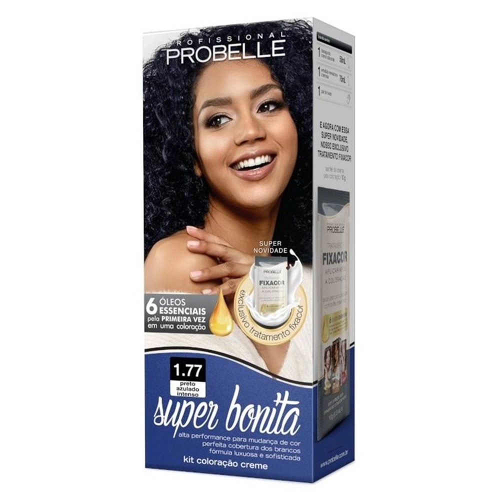 COLORACAO>PERMANENTE>SUPER BONITA>TINTURA PROBELLE SUPER BONITA KIT 1.77 PRETO AZULADO INTENSO